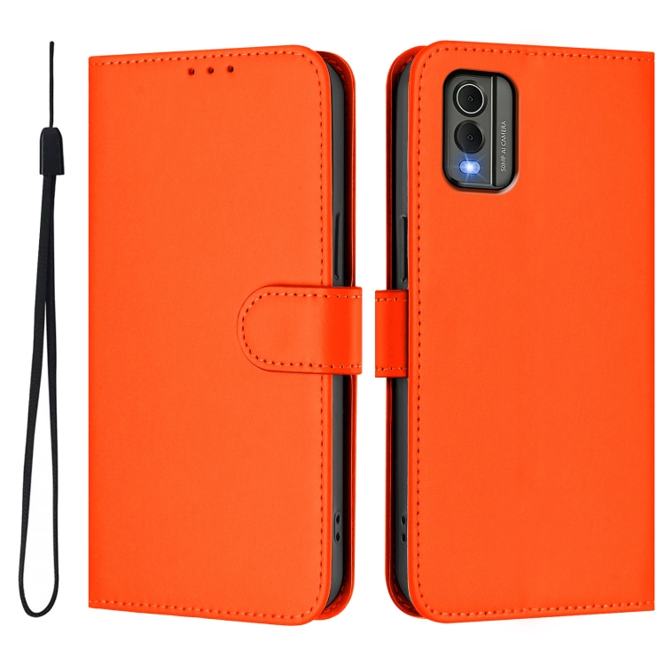 Funda de Piel con Cordón para Teléfono Nokia C32 con Acabado Liso (Naranja)