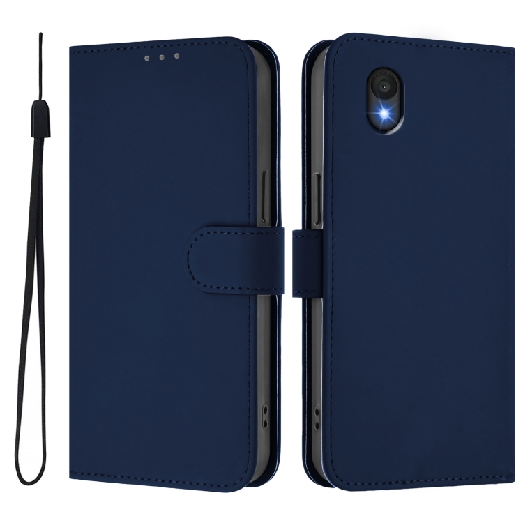 Funda de Piel con Cordón para Teléfono TCL 201 con Tacto de Piel (Azul Marino)