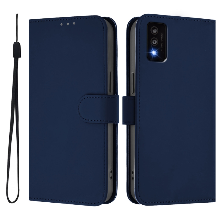 Funda de Piel con Cordón para Teléfono TCL 30T con Tacto de Piel (Azul Marino)
