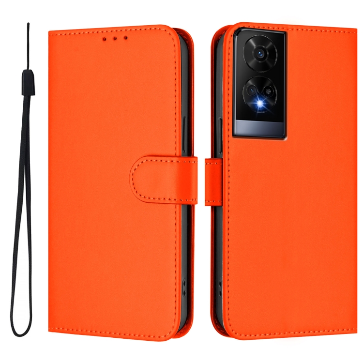 Funda de Piel con Cordón para Teléfono TCL 50 Xe con Acabado Liso (Naranja)