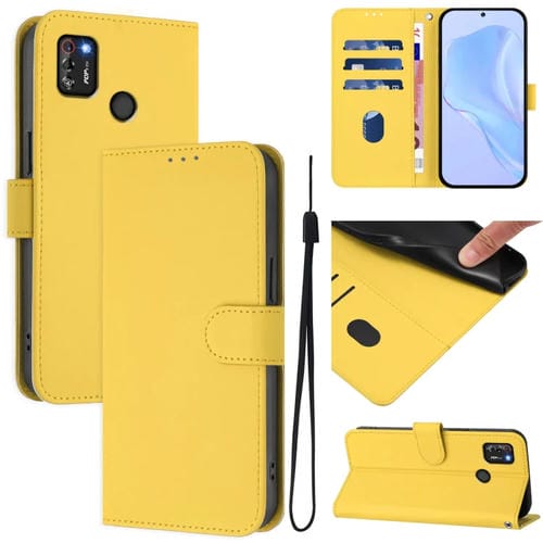Funda de Piel con Textura y Cordón para Tecno Pop 4 Pro (Amarillo Limón)