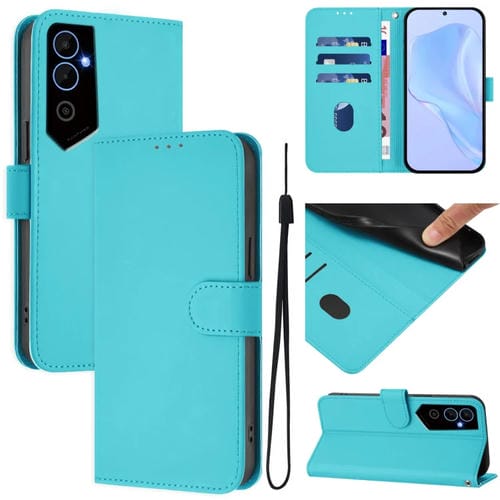 Funda de Piel con Cordón para Tecno Pova Neo 2 (Azul Lago)