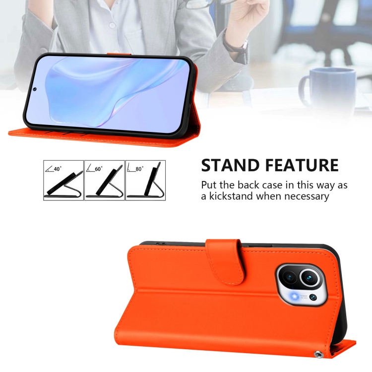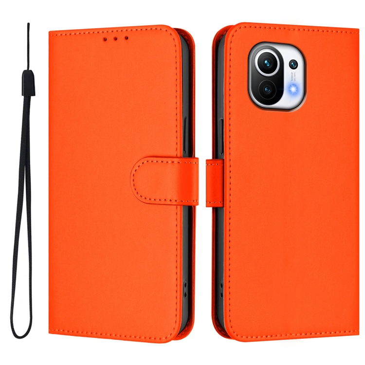 Funda de Piel con Cordón para Teléfono Xiaomi Mi 11 Skin Feel de Color Liso (Naranja)