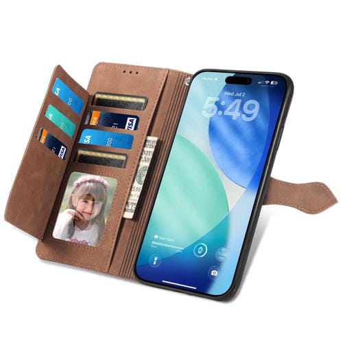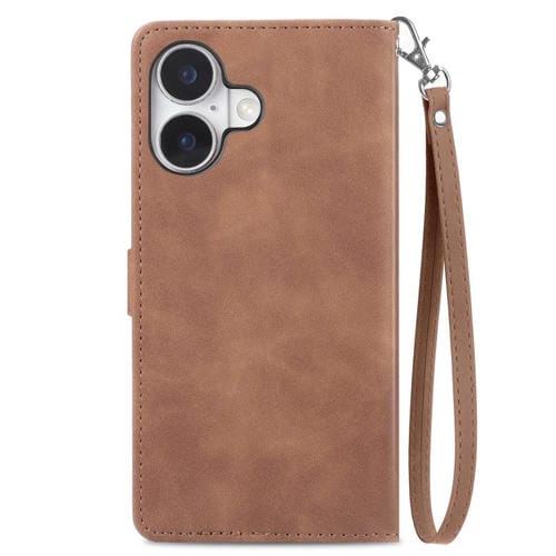 Funda de piel con cremallera y diseño floral en relieve para iPhone 17 (marrón)