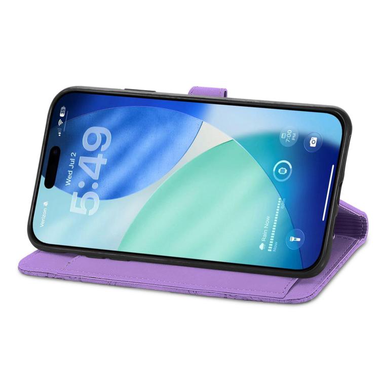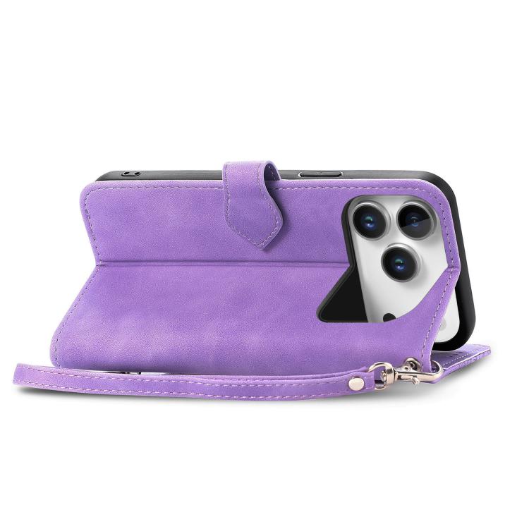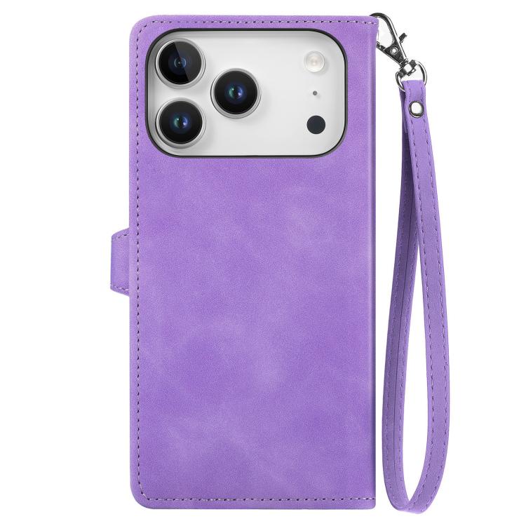 Funda de piel con cremallera y diseño floral en relieve para iPhone 17 Pro Max (morado)