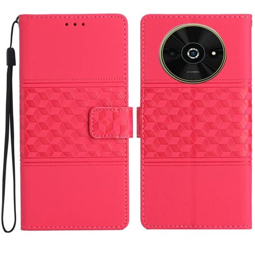 Funda de Piel con Efecto Piel En Relieve de Diamante para Xiaomi Poco C61 (Rojo)