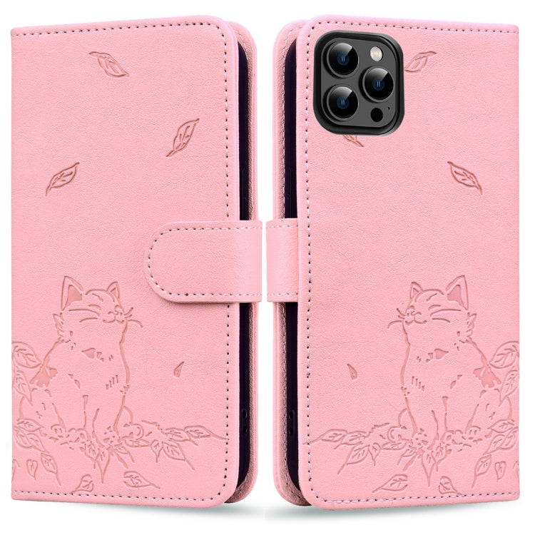 Funda de Piel iPhone 16 Pro Estampado de Gato (Rosa)