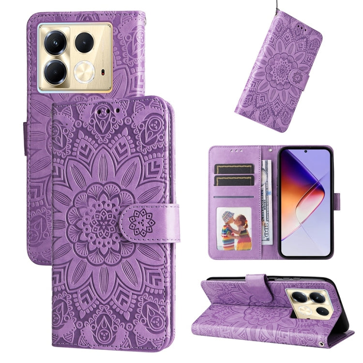 Funda de Piel para Infinix Note 40 5G con Estampado de Girasoles en Relieve (Morado)