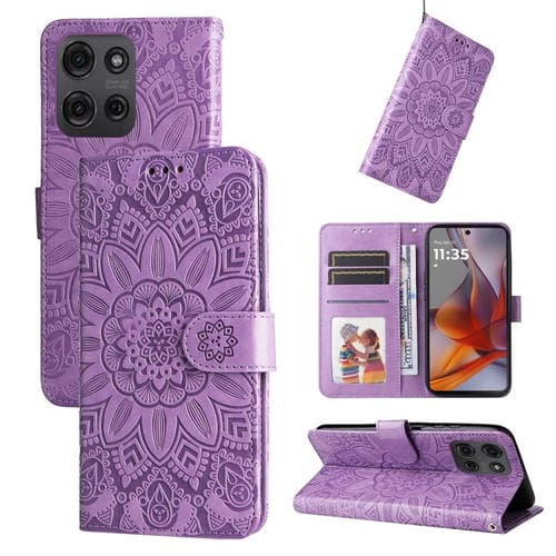 Funda de Piel con Relieve de Girasol para Motorola Moto G75 5G (Morado)