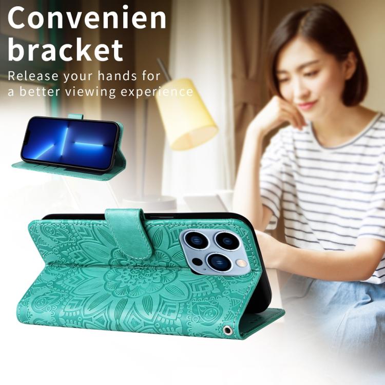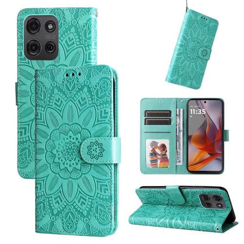 Funda de Piel con Relieve de Girasol para Motorola Moto G75 5G (Verde)