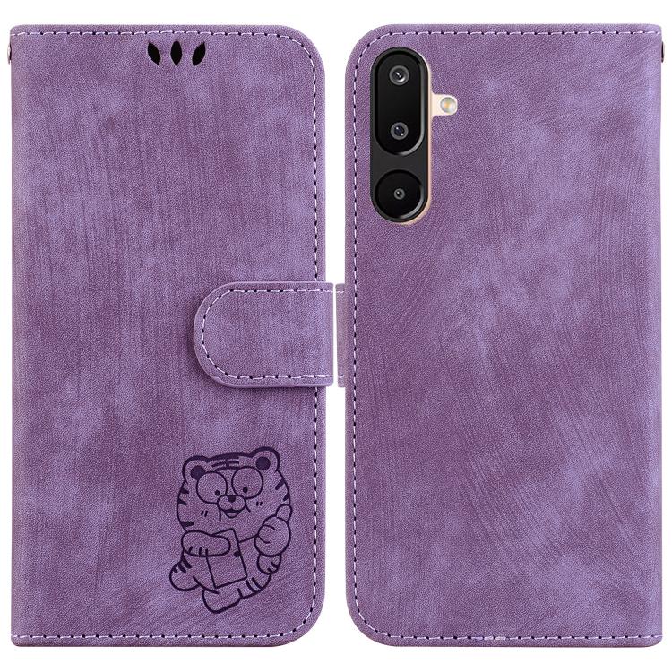 Funda de piel con relieve de tigre para Samsung Galaxy M16 5G / F16 5G / M36 5G (morada)