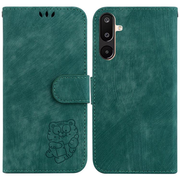 Funda de piel con relieve de tigre para Samsung Galaxy M16 5G / F16 5G / M36 5G (verde)