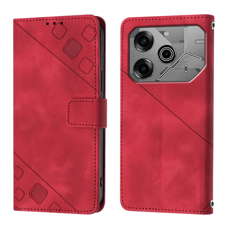 Funda de Piel con Relieve para Teléfono Tecno Pova 6 Neo Skin Feel (Roja)