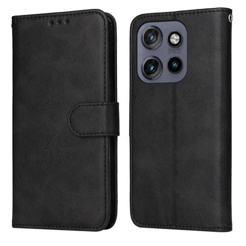 Funda de Piel con Tapa y Textura Clásica de Becerro para Motorola Edge 50 Neo/Thinkphone 25 (Negra)