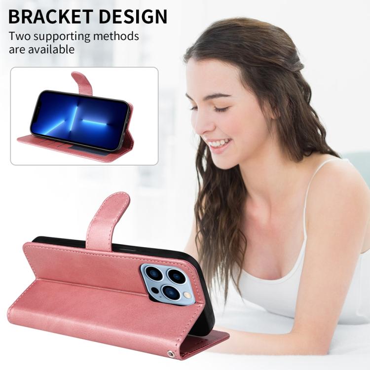 Funda de Piel con Tapa y Textura Clásica Becerro para Motorola Moto G35 (Oro Rosa)