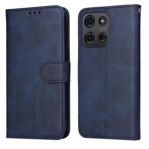 Funda de Piel con Tapa y Textura Clásica Becerro para Motorola Moto G75 5G (Azul)