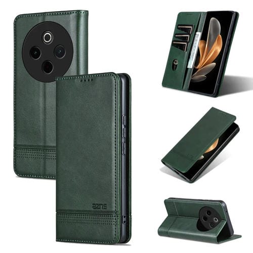 Funda Magnética Azns de Piel con Textura de Becerro para Vivo Y300 Pro (Verde Oscuro)