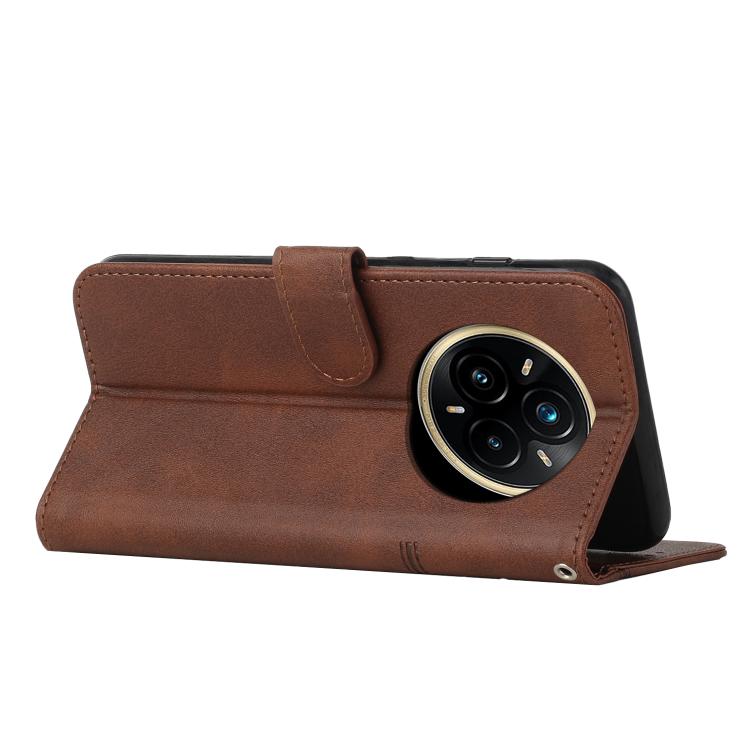 Funda de Piel con Textura de Becerro y Hebilla para Realme 14 Pro+ (Marrón)