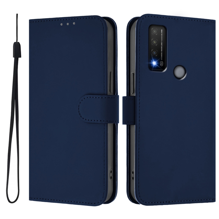 Funda de Piel para TCL 20 R 5G con Textura y Cordón (Azul Marino)