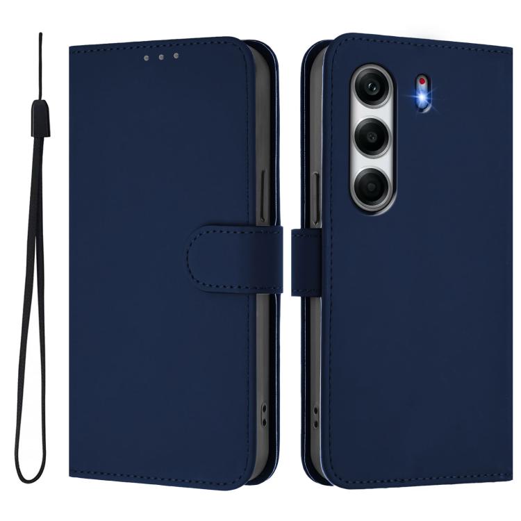 Funda de Piel para Tecno Camon 40 4G con Textura Lisa y Cordón (Azul Marino)