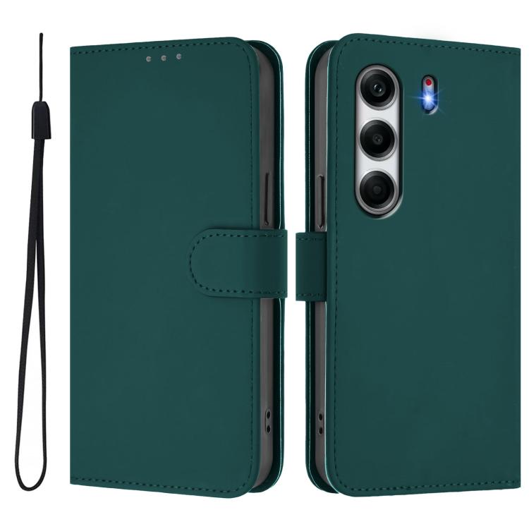 Funda de Piel para Tecno Camon 40 Pro 4G con Textura Liso y Cordón (Verde Oscuro)