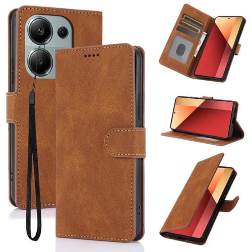 Funda de Piel de Becerro con Textura de Piel de Becerro y Diseño de Fantasía Global para Xiaomi Poco X6 5G (Marrón)