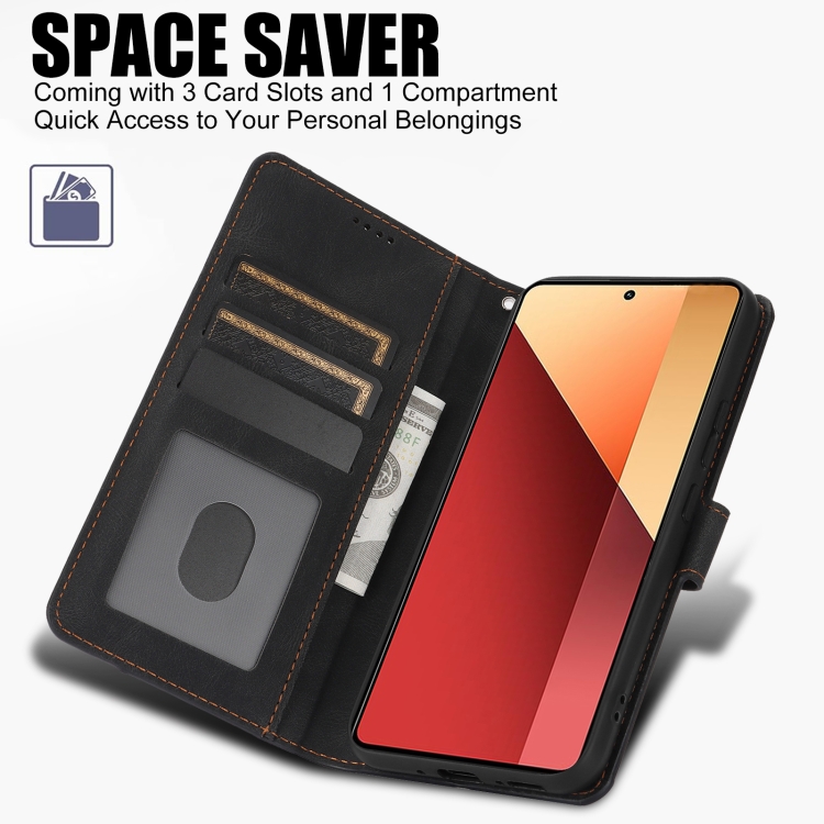 Funda de Piel de Becerro con Textura de Piel de Becerro y Diseño de Fantasía Global para Xiaomi Poco X6 5G (Negra)