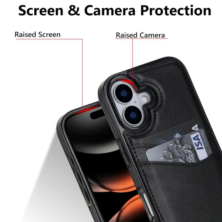Funda de piel de lichi con ranuras para tarjetas para iPhone 17 (negra)