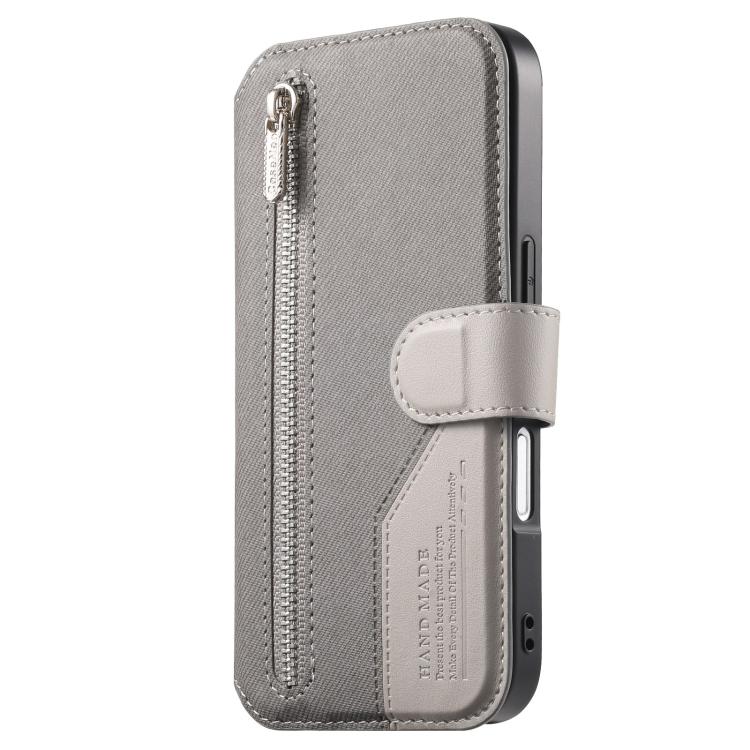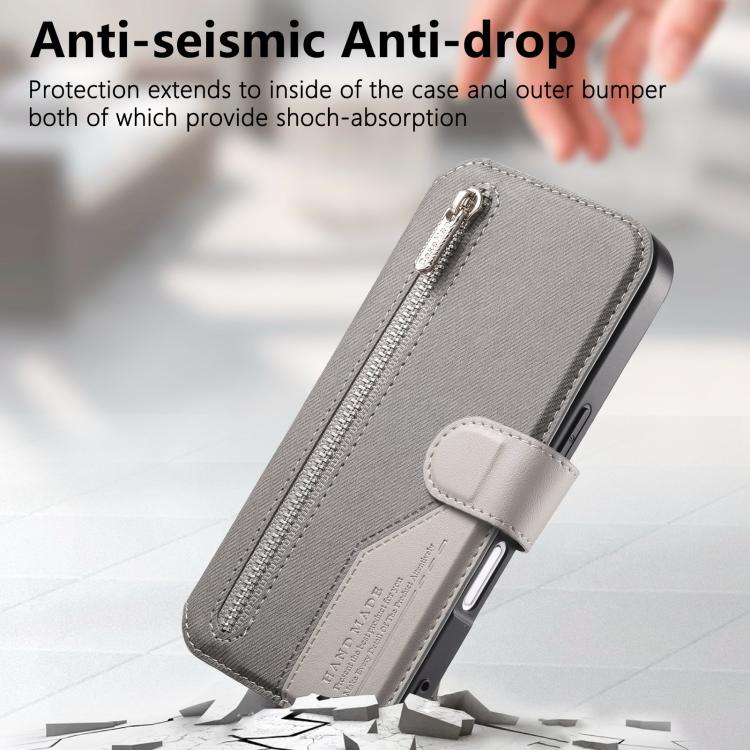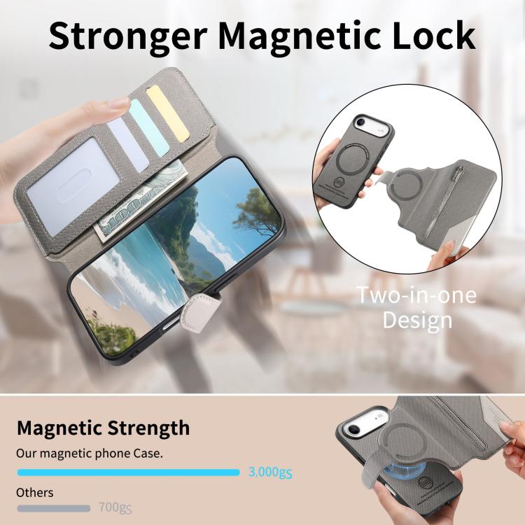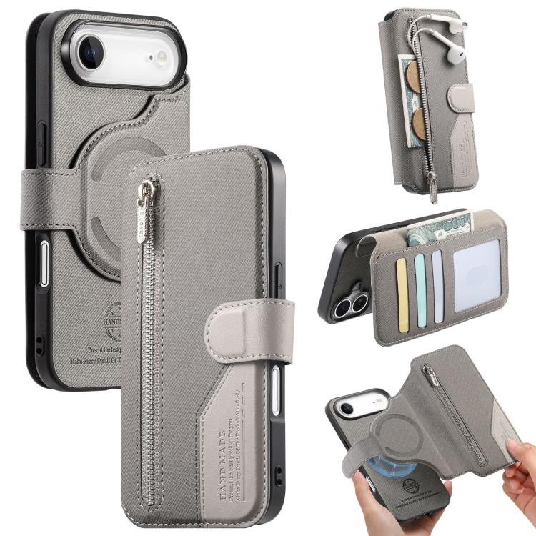 Funda de piel para iPhone Air, tipo cartera, con cremallera, MagSafe, RFID y protección antirrobo (Gris).