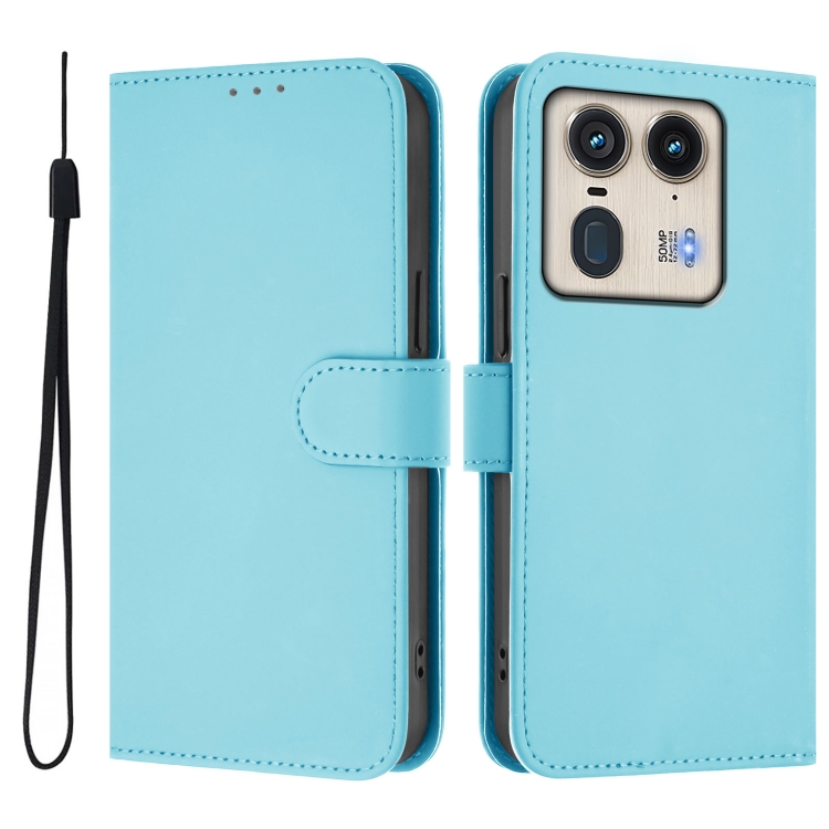 Funda de Piel Sintética con Cordón para Motorola Edge 50 Ultra/X50 Ultra (Azul Cielo)