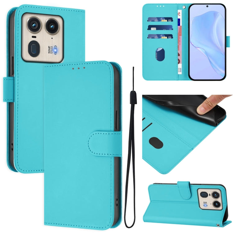 Funda de Piel Sintética con Cordón para Motorola Edge 50 Ultra/X50 Ultra (Azul Lago)