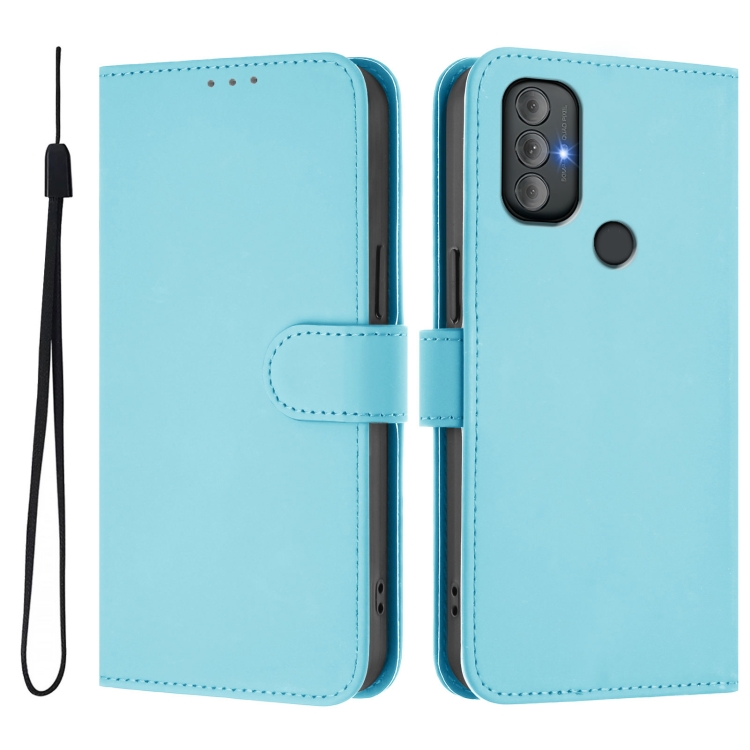 Funda de Piel Sintética con Cordón para Motorola Moto G Power 2022 (Azul Cielo)