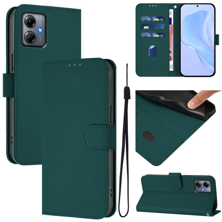 Funda de Piel Sintética con Cordón para Motorola Moto G14 4G (Verde Oscuro)