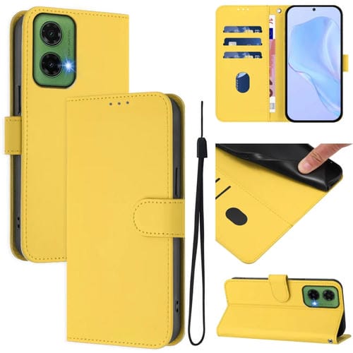 Funda de Piel Sintética con Cordón para Motorola Moto G35 (Amarillo Limón)