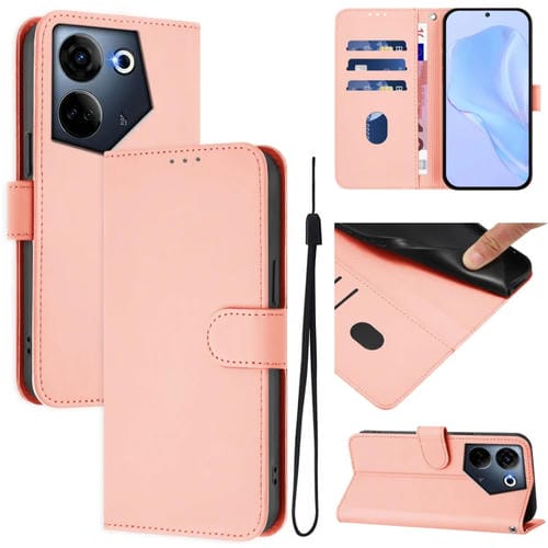 Funda de Piel Sintética con Cordón para Tecno Camon 20 Pro 4G (Rosa)