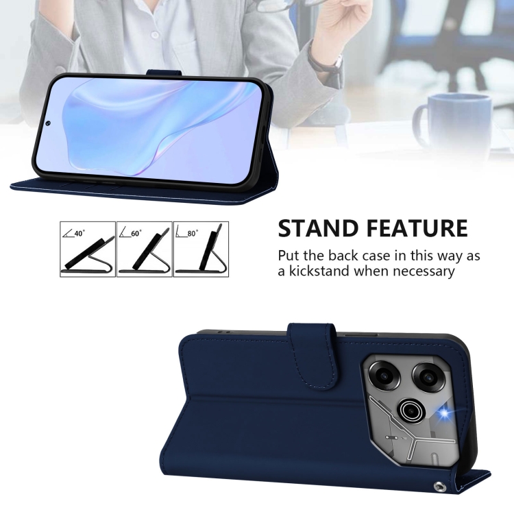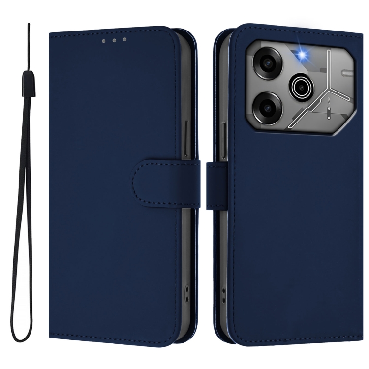 Funda de Cuero con Textura de Piel y Cordón para Tecno Pova 6 5G y 6 Pro 5G (Azul Marino)