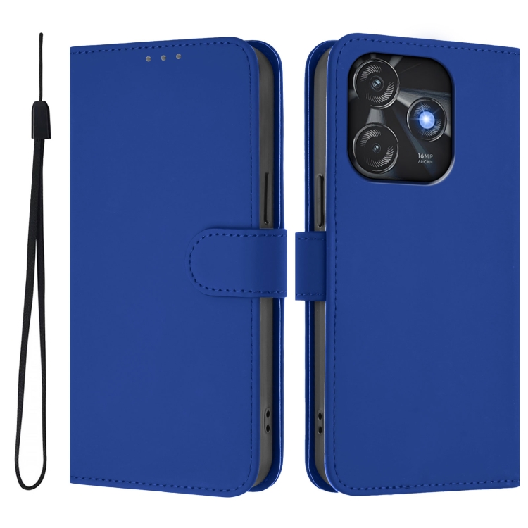Funda de Piel para Tecno Spark 10C y 10 4G con Textura Lisa y Cordón (Azul Oscuro)