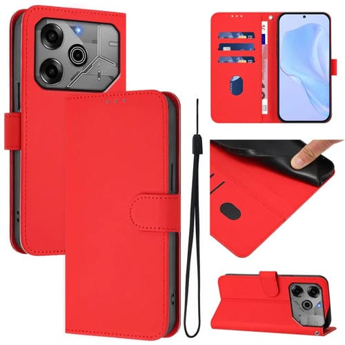 Funda de Piel Sintética con Cordón para Tecno Spark 6 Go/Go 2021 (Rojo)