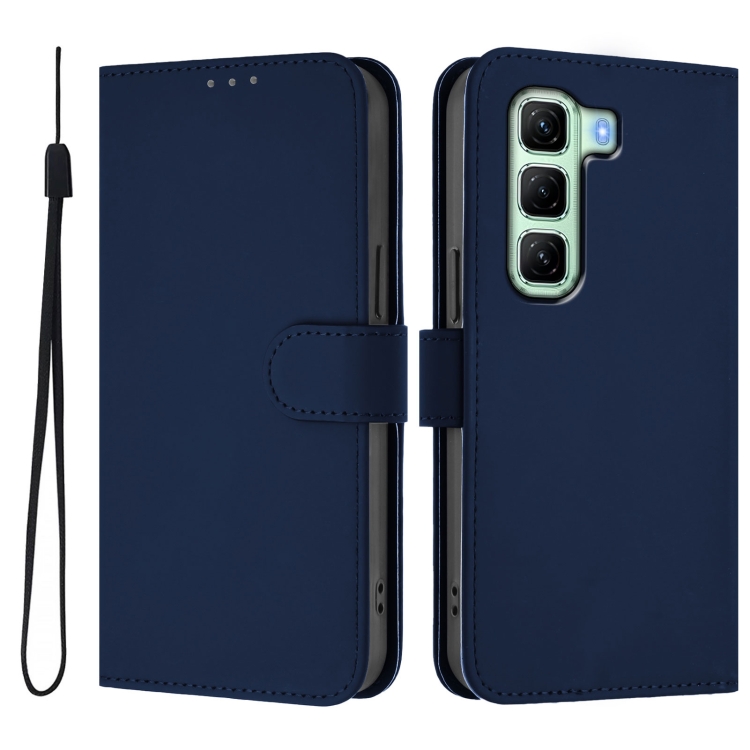 Funda de Piel Sintética con Cordón para Teléfono Infinix Hot 50 4G (Azul Marino)