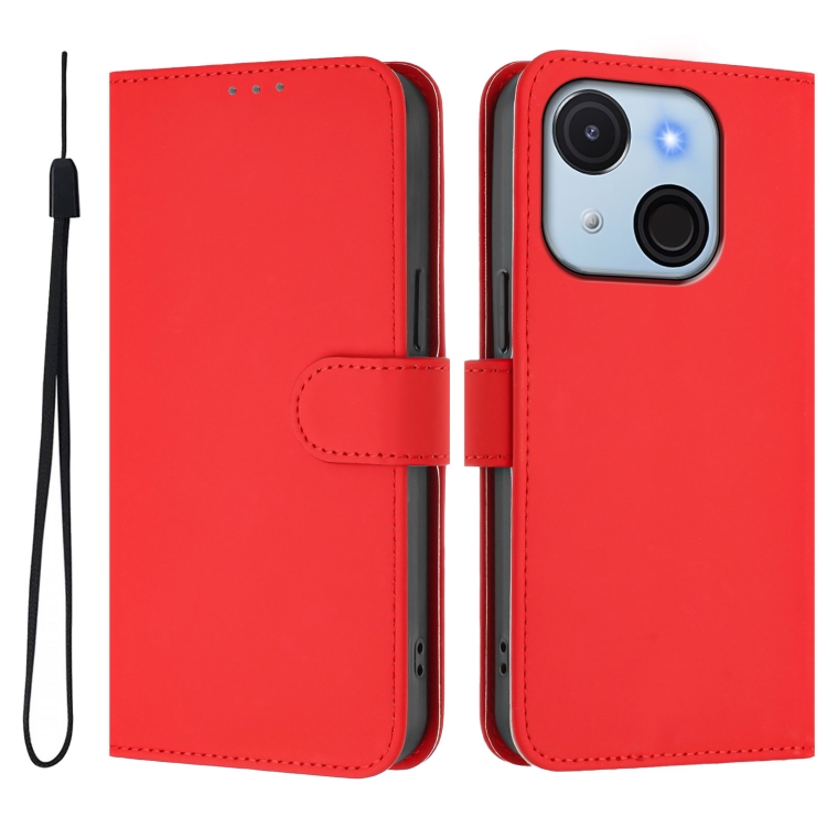 Funda de Piel Sintética con Cordón para Teléfono Itel A50C (Rojo)