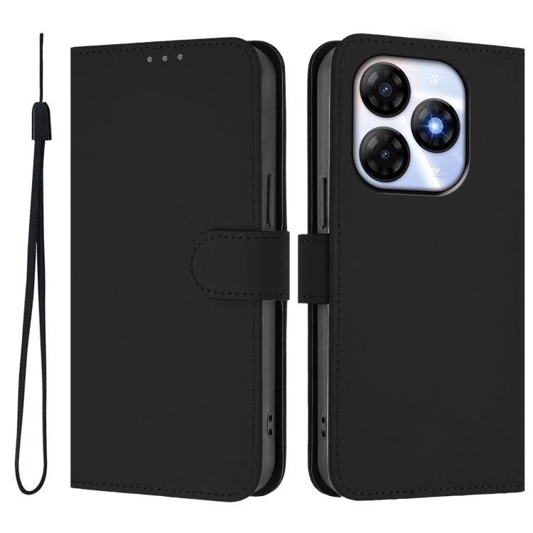 Funda de Piel Sintética con Cordón para Teléfono Itel P55 4G (Negro)