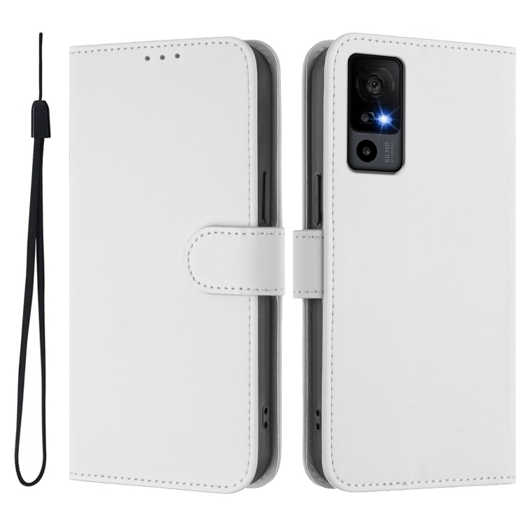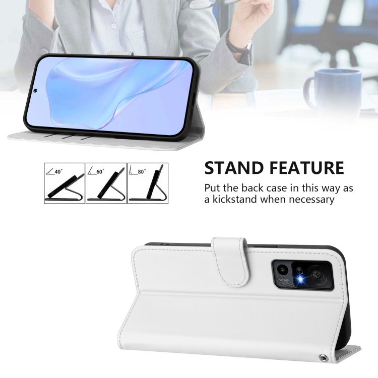 Funda de Piel Sintética con Cordón para TCL 40 R 5G (Blanco)