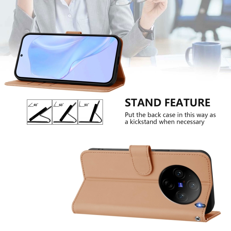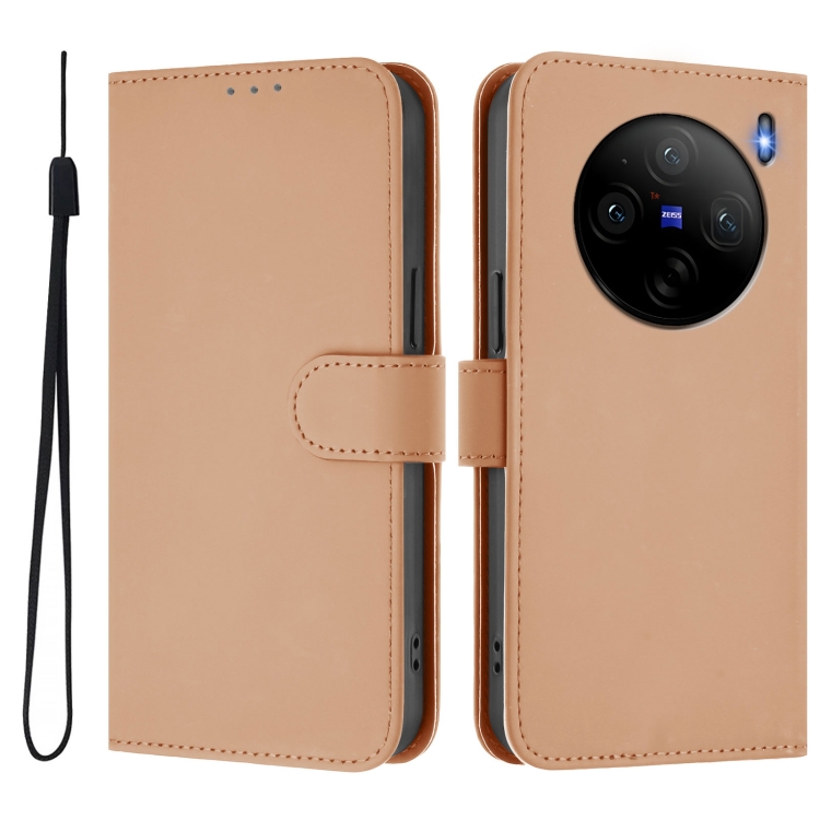 Funda de Piel Sintética con Cordón para Teléfono Vivo X100S 5G (Color Piel)