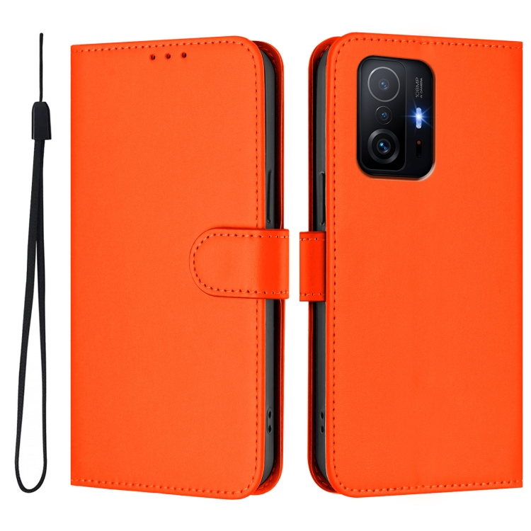 Funda de Piel Sintética con Cordón para Xiaomi 11T/11T Pro, Color Liso, con Tacto de Piel (Naranja)