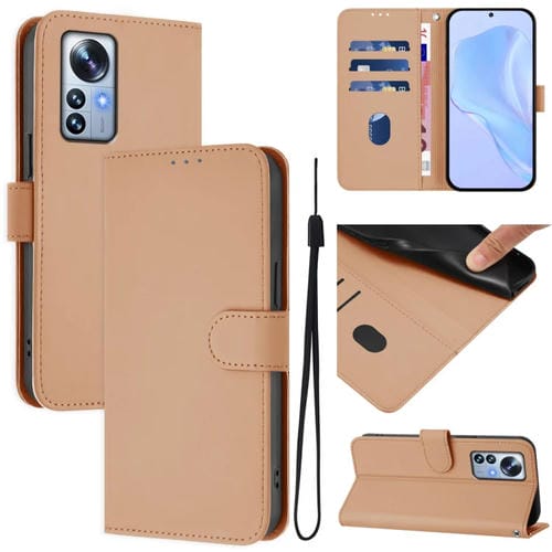 Funda de Piel Sintética con Cordón para Xiaomi 12S Pro/12 Pro (Color Piel)