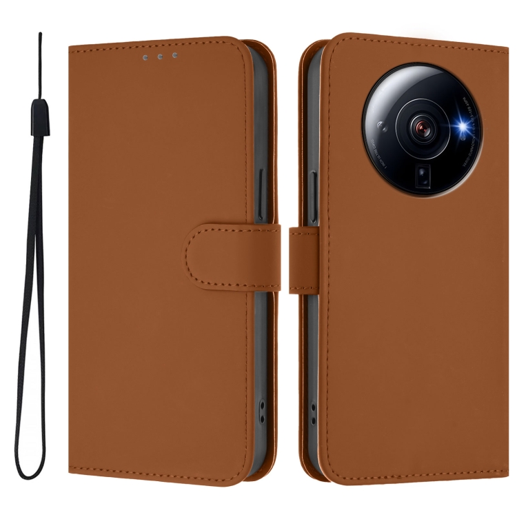 Funda de Piel Sintética con Cordón para Xiaomi 12S Ultra Skin Feel de Color Liso (Marrón)