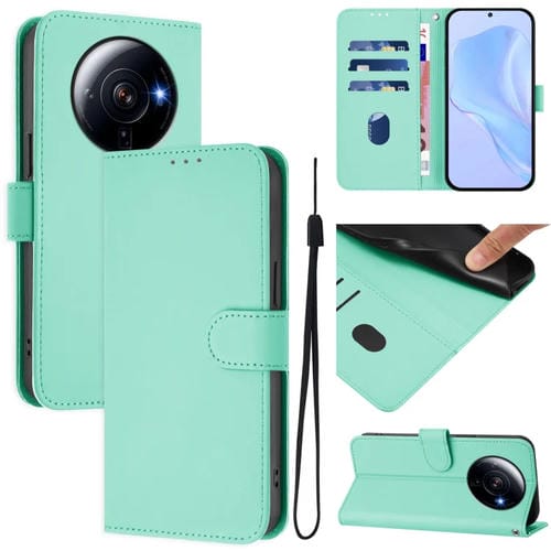 Funda de Piel Sintética con Cordón para Xiaomi 12S Ultra Skin Feel de Color Liso (Verde Menta)