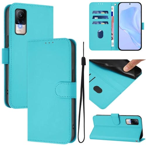 Funda de Piel Sintética con Cordón para Xiaomi Civi 1S (Azul Lago)