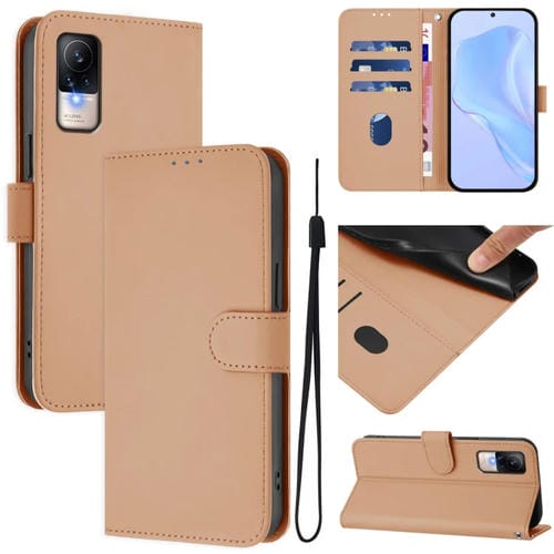 Funda de Piel Sintética con Cordón para Xiaomi Civi 1S (Color Piel)