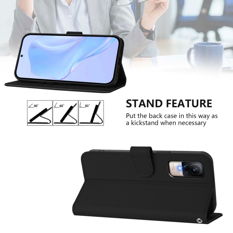 Funda de Piel Sintética con Cordón para Xiaomi Civi 1S (Color Sólido) (Negro)
